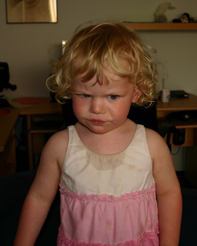 Mein ansonsten eher kooperatives Kind, das auch gerne “Bitte” und “Danke” sagt, mutierte heute Nacht zum trotzigen Kleinkind. Sie soll ihre Sachen in ihr Zimmer bringen? “Nein Mama, mach du selber!”. Ihren Müll (z.B. Wassereis) wegschmeissen? “Neiiiiiiiiiiiheeeiiiiiiiiiiiiin” *indenhöchstenTönenkreisch*. Kommt Besuch oder Familie nach Hause: “Hast du mir was mitgebracht?” shock (Opa, daran bist du schuld *g*). Gezicke ohne Ende mit Jana, die allerdings in dem gleichen enervierenden Jaulton zurück zickt. Einer meiner Lieblinge: ihre Freundin E. kreischt gerne, wenn sie ihren Willen nicht bekommt. Jupp, DAS kann man lernen und nachmachen. Und weil es so schön ist, steht hauen seit heute auf dem Programm. Einfach so, weil sie es lustig findet oder ich gerade nicht das mache, was sie möchte. Mag den kleinen Giftzwerg jemand für die nächsten Wochen geliehen haben?