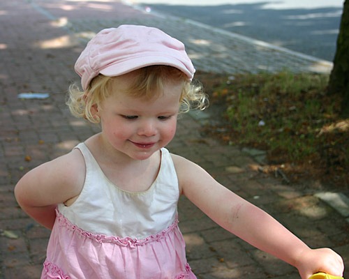 Wieder zu Hause ging das Gebocke weiter und als es hieß: raus an den Bontekai schlurfte sie maulig mit gesenktem Kopf hinter uns her (Uaaaah, gezwungen zum Spazieren gehen!). Bis ihr eine Ecke weiter einfiel, das sie doch gerne ihre Blades hätte. Chris also mit ihr zurück, ich langsam mit Lena weiter und am Bontekai trafen wir uns wieder. Zum Glück machte Jana relativ schnell wieder schlapp und wir beiden durften nach Hause zurück ziehen, während Chris mit Lena weiter machte.