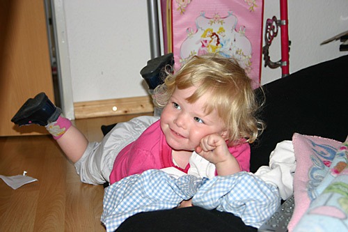 – Später ganz besorgt um Jana: “Hast du dich verschreckt?” und weil sie heute das Thema Verwandschaft hatte, gleich im wichtigen Tonfall hinterher: “Du bist meine Schwester, weißt du?”