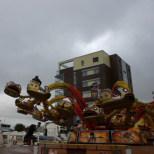 Zuhause haben wir dann geputzt, Essen gekocht und anschließend kam Anne und wir zogen alle zusammen noch mal los auf den Rummel, denn: ich hatte Jana versprochen mit ihr in die Krake zu gehen. Anne wollte auch und so ließ ich mich von den beiden zerquetschen. Die Kinder wären am liebsten noch mal gefahren, ich war froh wieder draußen zu sein *g*. Chris zog mit den Kindern weiter, ich hatte mein Soll erfüllt und zog nach Hause. Und nu ist Feierabend
