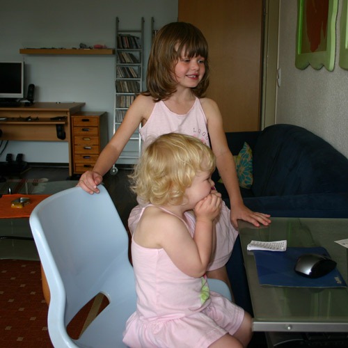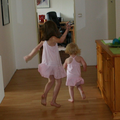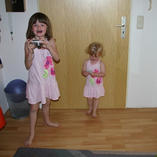 Heute stand toben auf dem Plan. Toben, toben und noch mal toben *seufz*. Jana “drehte” Interviews mit meiner alten Digicam (sogar der arme Vogel musste dran glauben) und “Horror”-Mama musste auch mal wieder ran. Irgendwann im Schlafzimmer auf dem Bett, ich schon reichlich erschöpft vom vielen Kitzeln müssen, stellte sich Jana schlafend. Daraufhin Lena in fröhlichstem Sing-Sang-Ton “Oh schau mal, Jana ist tohooooooot” shock .