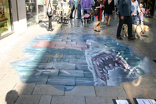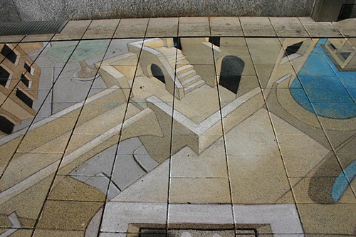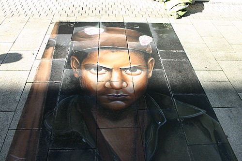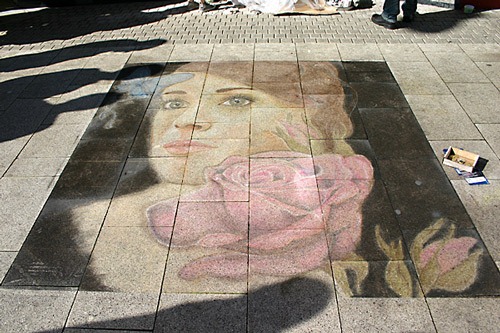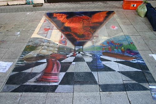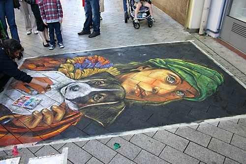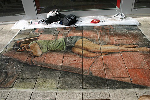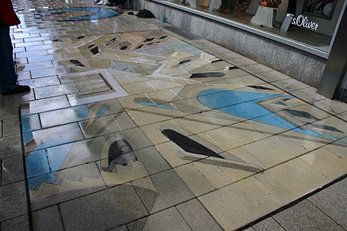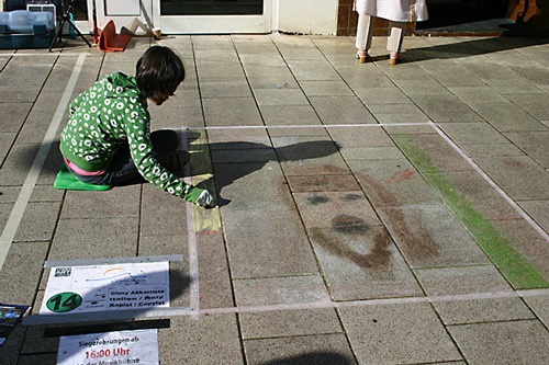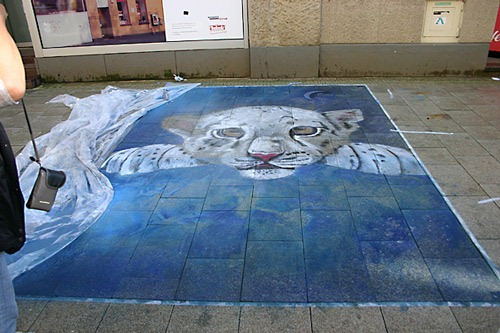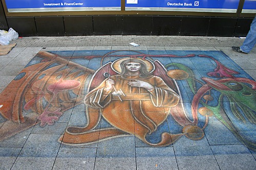 Durch den Regen leicht verwischt, das 3D-Walbild hat es fast komplett weggeschwemmt und der verzerrte Engel war tatsächlich weg nach dem Unwetterchen.