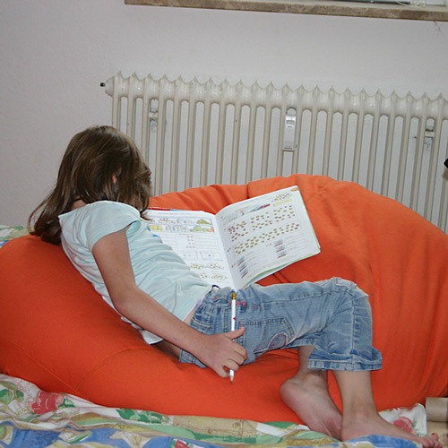 Kaum legt man den Sitzsack aufs Bett, weil man im Flur (wo er sonst liegt) wischen will, schon liegt ein Streberkind *g* drauf und macht ihr Mathebuch fertig.