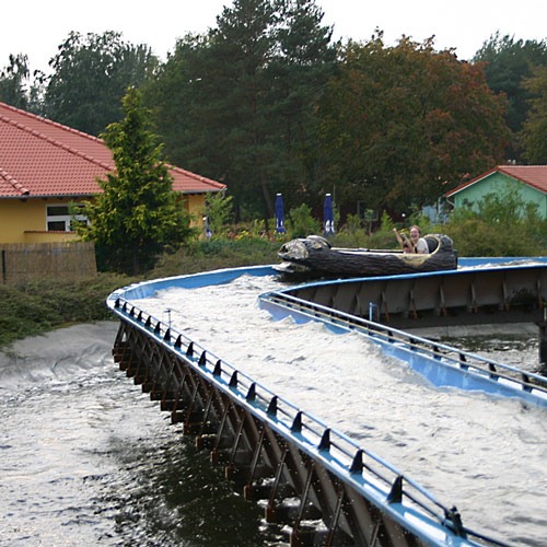 … wanderten wir zurück zum Eingang für die Dschungelsafari und machten die Tour auch noch mit. Diesmal ohne Fenster und näher an den Tieren dran, als mit dem Bus. Lena bekam angesichts der Plastiktiere und der Wasserüberfälle allerdings Angst und arg nass kamen wir von der Tour wieder zurück. Machte aber nichts, weil es mittlerweile eh schon spät war und wir sowieso nur noch ein Karussell und die Wasserbahn abklappern wollten. Jana wusste schon, wieso sie die Wasserbahn fürs Ende vorgesehen hatte *g*.