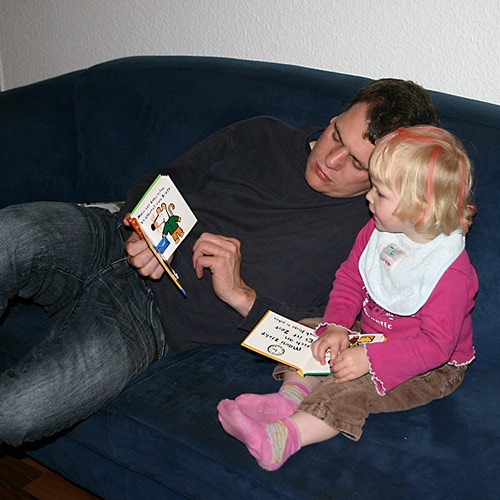 Manche Tage sind merkwürdig und so ein Tag war das heute. Heute Nacht gegen 3 Uhr kam Lena zu uns und beschwerte sich, das sie ihr Felix-Buch nicht gefunden hätte :kopfkratz: . Ich wollte ihre Decke und ihr Kissen holen und fand in ihrem Zimmer tatsächlich ihren Bücherschrank offen stehend. Also auch schnell piebts nach Felix gesucht und auch nicht gefunden. Wieder zurück ins Bett und eine Runde gekuschelt und das Kind auf den Morgen vertröstet. Morgens war sie natürlich noch völlig müde, kam zu mir ins Badezimmer und kuschelte noch eine Runde (ich liebe das *g*). Beim Frühstück bekam Chris dann die andere Hälfte ab. Aus heiterem Himmel jaulte Lena los und eine Nachfrage von Chris ergab: “Ich bin saaaaaahaaaaaaaaaatt” *jaulheul*. Äh ja, und wieso das Geheule? “Ich hab schlecht geschlafen” *schluchz*. Chris tat mir fast (aber nur fast *fg*) leid. Kindergarten fand sie prinzipiell auch eine schlechte Idee, sie wollte wieder zu S. . Im Kindergarten flitzte sie trotzdem direkt los und ich konnte beruhigt arbeiten gehen.
