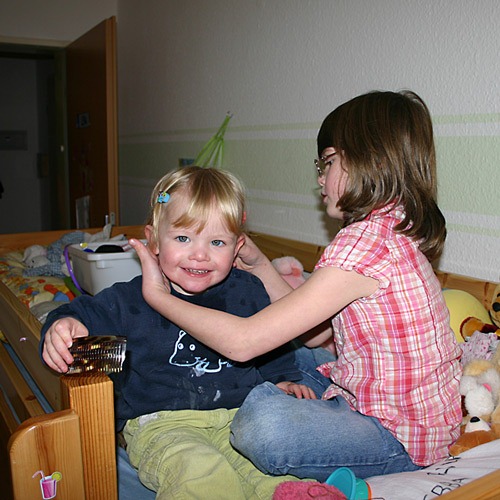 Aber von vorne. Der Tag ging natürlich nicht mit meinem Arzttermin los, sondern mit Lenas. Schon vorher durfte ich mir mal wieder anhören, das ich sterben soll (*gääääääääähn*, so langsam wird es langweilig). Beim Arzt selber wurde ich genötigt auf Ikea-Höckerchen zu sitzen und mitzuspielen. Der Verband ist theoretisch ab, ein dickes Stück Schorf (auf einer Minibrandblase neben der großen Blase) weigert sich aber noch hartnäckig ab zu gehen und hängt am seidenen Faden. Leider ist die Haut da drunter noch sehr rot und wund. Also: Pflaster drauf und da drüber wieder ganz dünn Mullbinde.