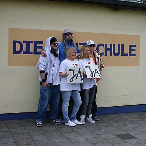 Danach fuhren wir direkt zur Tanzschule, wo wir uns mit Opa und Jana trafen. Die Kinder probten alle zusammen noch 2x und dann kam endlich, endlich die Schlicktown Crew. Während draußen noch Pressefotos gemacht wurden, stapelten sich innen an der Glastür die Mädels mit “Sie sind da, sie sind da”-Gekreische. Die Mädels haben erst vorgetanzt, dann hat die Schlicktown Crew ihr Lied gesungen/gerappt und zum guten Schluss durften die Mädchen noch mal tanzen, diesmal wurden sie dabei von unserem Lokalsender gefilmt. Gruppenfoto, Autogramme und dann ging es so langsam nach Hause.