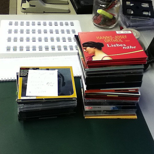. Bis zur Arbeit wirkte die Ibu zwar, aber 2 halbschlaflose Nächte + 2 Tage Kopf- und Nackenschmerzen + Spastik (*ironieon* juhuuu *ironieoff*) sorgten auch dort dafür, das ich ein wenig neben der Spur lief, zumal der dumpfe Schmerz im Kopf nicht komplett verschwand. Viel zu früh war ich beim Aufbauen, ging kurz vor der Ausleihe noch mal in Richtung Toilette und während ich mir dort die Hände wusch klingelte mein Handy, das ich dann mit nassen Händen aus der Tasche zog (nicht mein Tag, erwähnte ich das schon?). Lenas Erzieherin informierte mich darüber, das Lena sich den Kopf mit Karacho am Türrahmen angehauen hätte und ob wir sie wohl abholen könnten oder was sie machen sollten. Ich fragte dann, wann es denn passiert wäre (weil sie meinte, Lena würde in den Seilen hängen) und erfuhr: vor ca. 10 Minuten. Wir verblieben bei weiteren 15 Minuten Wartezeit und dann wollte sie mir noch mal melden wie es Lena ginge. 15 Minuten später: Chris oder ich müsse Lena abholen. Ihr ginge es gar nicht gut. Also fragte ich Nadine, ob sie übernehmen könne und musste Bine – die auch gerade kam – im vorbeigehen kurz begrüßen, bevor ich losfuhr. Im Kiga lag Lena tatsächlich ganz blass und leidend auf dem Sofa im Puppenzimmer, kuschelte mit der Praktikantin und kühlte fleißig den Kopf. Auf dem Weg nach oben erwachten ihre Lebensgeister aber wieder, nach Schokolade konnte sie jedenfalls fragen.