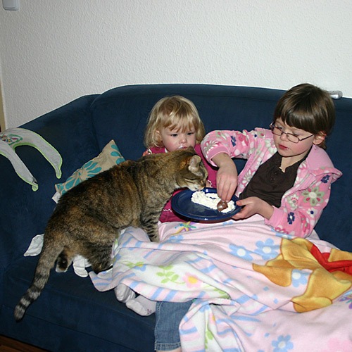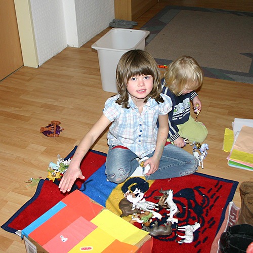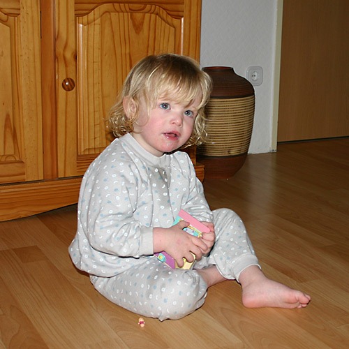 Oben angekommen rief ich D. an und sagte Bescheid, das es wohl keine Gehirnerschütterung ist/wird (wäre ja wichtig für Arbeit morgen gewesen). Rief den Kinderarzt an, die hatten Termin um 16 Uhr und dann fuhren Lena und ich eben Jana abholen. Für Lena das Signal zum Mittagsschlaf, den brauchte sie nach dem Schock anscheinend doch mal wieder. Bis wir zum Augenarzt mussten, war Lena wieder obenauf und hatte wie die letzten Tage nur Blödsinn im Kopf. Den Kinderarzt hab ich daraufhin gestrichen, mit einem so fitten Kind da aufzutauchen wäre mir ein wenig blöd vorgekommen und irgendeine Krankheit hätten wir im Wartezimmer bestimmt aufgeschnappt. Beim Augenarzt waren wir nach 10 Minuten wieder draußen, inkl. neuem Brillenrezept für Jana und wieder ging es nach Hause.