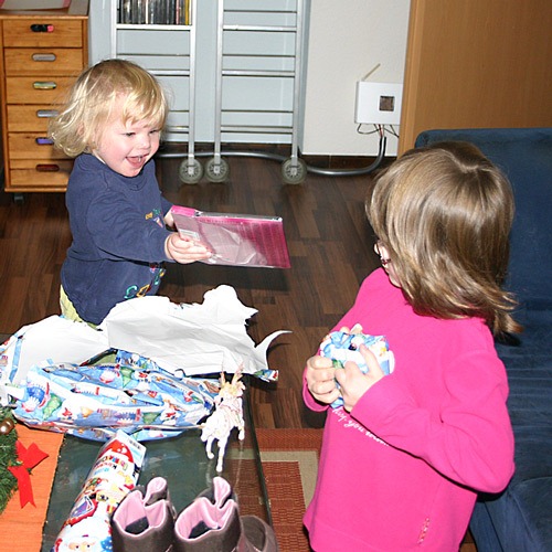 – Jana gestern zu Lena, als ich den beiden verwehrte, das gesamte Tesafilm aufzubrauchen: “Lena, der Nikolaus hat doch vorhin angerufen und Mama gesagt, das er nicht mehr genug Geschenkpapier und Tesafilm hat. Nachher muss Mama ihm das vorbeibringen und wenn wir jetzt alles aufbrauchen, kann er uns morgen nichts schenken!”. Danke, Töchterchen.