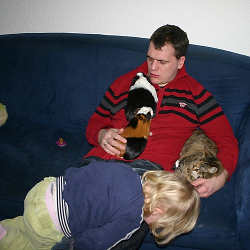 Heute morgen wurde ich von einem Krachen geweckt. Als ich schauen ging, erwartete mich im Flur schon eine schöne Spur Hamsterstreu. Hamsterstreu? Da sind die Kinder allen Ernstes morgens um 8 Uhr auf die tolle Idee gekommen, die Meerschweinchen auszumisten. Lieb gemeint, aber wenn Muttern noch mit halboffenen Augen, ohne Brille und barfuß in den Kram reintritt, kann Muttern auch spontan ein wenig lauter werden. Zumal ich IMMER das ausmisten alleine mache und die Kinder weg scheuche (mit den Meeris spielen lasse), damit eben NICHT der Mist in der ganzen Wohnung rumfliegt.