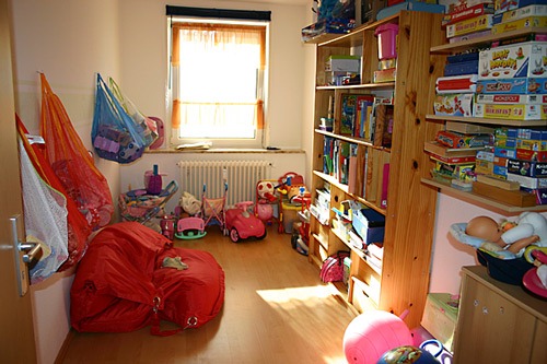 Spielzeugaufbewahrungszimmer Smiley . Das große Regal hatte ich die letzten Tage schon mit Hilfe der Kinder leer geräumt und quer durch die Wohnung geschoben.