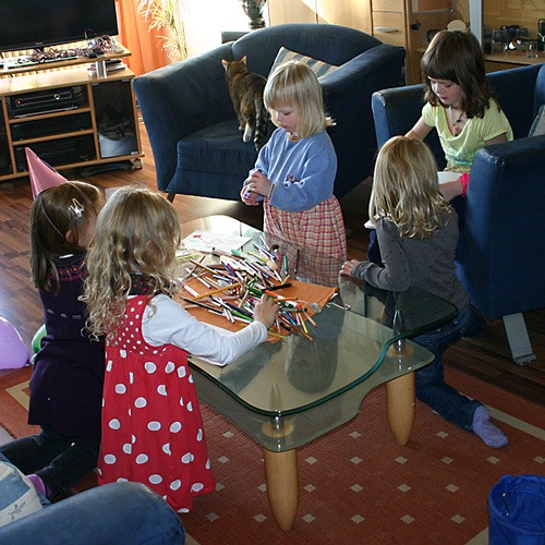 … war heute nicht ich, sondern Lena. Heute Morgen Kino, ab heute Mittag im 10-Minuten-Takt genervt, wann die Gäste denn kommen. Und kaum waren die Gäste wieder weg, schlief sie auch schon *g*. Schön war es und Jana hat sich ganz toll mit den Kindern beschäftigt. Das Bild, auf dem sie mit der ganzen Horde (außer Lena) auf der Couch sitzt und denen vorliest, kann ich hier leider nicht zeigen. Aber das war zu süß :herz: . Erstaunt hat mich eines der Mädchen, die ich bisher bei unseren kurzen Zusammentreffen anders eingeschätzt hatte. Das Mädchen kann meinetwegen gerne öfter kommen, die mag ich