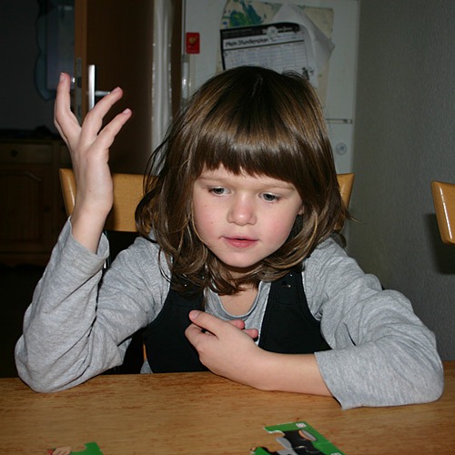 Nach dem üblichen Aufräum-, Putz- und Waschkram konnte man bei dem Wetter eigentlich nicht wirklich mehr tun, als Gesellschaftsspiele rauszukramen. Bei dem Maulwurfspiel waren wir alle praktisch schon fertig, wir brauchten alle nur noch eine 5. Und bekamen die natürlich nicht. Lena nahm sich irgendwann den Würfel und meinte “Jetzt weiß ich, wie das geht. Man muss gaaaanz langsam würfeln”. Sprach’s, würfelte und warf: eine 5