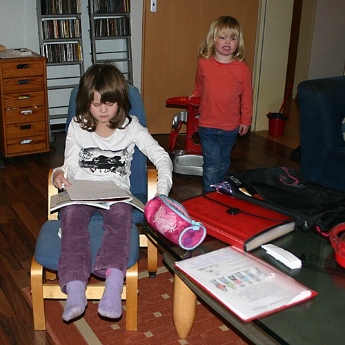 – 13:20 Mit den Kindern zu Hause. Kinder haben gegessen, ich habe schon mal alles weggeräumt, was beim putzen so aus dem Weg gehört.