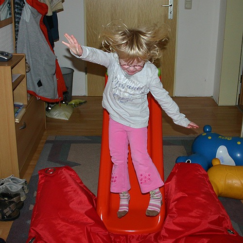 Im Treppenhaus fing mich unsere neue Nachbarin ab. 3 Kinder wollte sie von der Schule abholen, ihr Patenkind musste jedoch plötzlich auch mit: also Platzproblem im Auto. So ging der kleine M. kurzerhand mit zu uns hoch und sie bedankte sich tausend Mal *g*. Zur Revanche nahm sie hinterher allerdings Lena mit runter, alles ausgeglichen also …