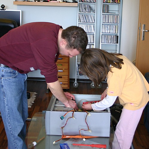 Während Chris und Jana dann mit ihrem PC weiter machten (Umbau), machte ich hier hier sauber und Lena wuselte mit ABC-Heft und Stift rum. Essen, Mittagspause (ausgedehnt), eine lange Runde “Hase und Igel” und schon war wieder Feierabend. Nur mein Rechner muckt ein wenig vor sich hin seit Chris ihn vorhin schneller machen wollte mit mehr Speicher.