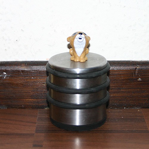 Ähm. Ja. Eine Ü-Ei-Figur auf unserem Türstopper. Heute Vormittag beim Staubsaugen gefunden. Kein Wunder, das die Kinder ihre Sachen nie finden. Wobei ich gestehen muss, das ich gestern zwei Fix-Tüten im Buchregal im Spielzimmer wieder gefunden habe, die garantiert NICHT die Kinder da abgelegt haben.