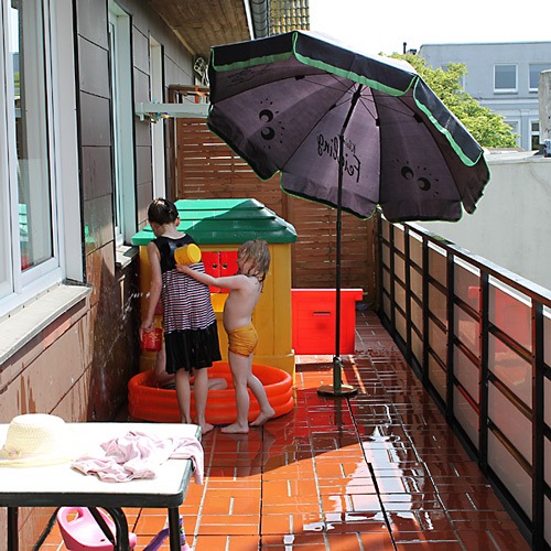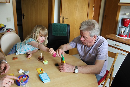 das wir Schwies für heute eh zum Essen eingeladen hatten. So konnten Oma und Opa noch schön essen, bevor sie nach Bremen fuhren um B. (eine von den Ecus) abzuholen. Für Jana das erste Mal Flughafen, während Lena Eltern-Exklusivzeit hatte