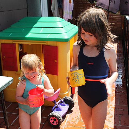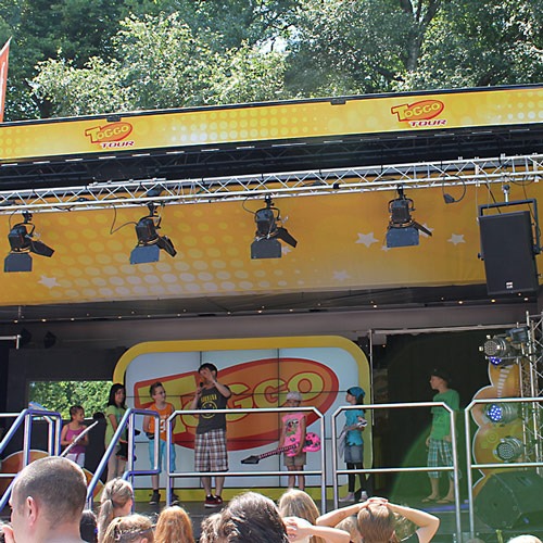 Heute morgen liefen wir zum zweiten Mal dieses Wochenende zum Flohmarkt. Wir gingen schnell weiter in Richtung Pumpwerk und teilten uns dort auf. Chris dackelte hinter Jana her, ich übernahm Lena. Hüpfburg, Wasserspiele, Fußball, Kleinkinderspielbereich. Zwischendrin Unterhaltungen mit Müttern, die ich schon Ewigkeiten nicht mehr gesehen habe und immer wieder Gestöhne über die Sonne, die am Pumpwerk wenig Schattenplätze übrig ließ. Jana durfte auf der Bühne ein Spiel mitmachen, ich ging die Groove Onkels ansehen. Hielten wir aber nicht bis ganz zum Ende durch, dafür wurde es zu heiß und die Kinder zu nörgelig.