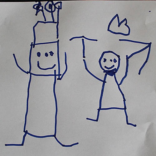 “Mama und Papa auf dem Weg zu ihrer Hochzeit”. Mama trägt einen Blumenhut und Papa einen Schnurrbart *kopfkratz*. Und wieso bin ich eigentlich immer größer und dicker als Chris??? *schmoll*