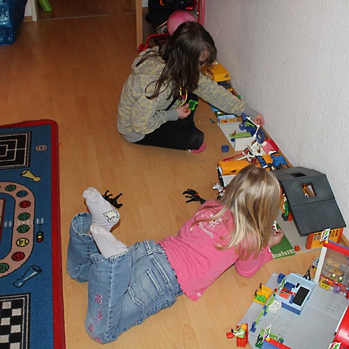 Wir liefen also praktisch direkt los, nachdem wir Jana und A. zu A. nach Hause gebracht hatten und hatten das Glück, auf dem Rückweg vom Einkauf M. zu treffen. Hielten einen kurzen Plausch und kaum waren wir zu Hause, klingelte auch schon das Telefon und M. fragte nach, ob Lena noch Lust hätte mit E. zu spielen. Hatte sie natürlich und während ich in Ruhe Kartoffeln schälen und schneiden konnte, haben die beiden wunderbar zusammen gespielt