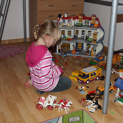 – Playmobil ist momentan DAS Spielzeug (neben Mariposa) und da wird auch gnadenlos die große Schwester angebettelt: “Ich mach auch alles was du wiiiiiiihiiiiilst. Ja, darf ich?” (große Bettelkulleraugen bitte denken *g*)