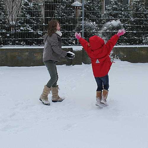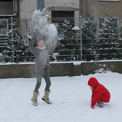 Raus im wörtlichen Sinne, weil es doch heute Nacht so schön weiter geschneit hatte und draußen eine noch unberührte Decke lag.