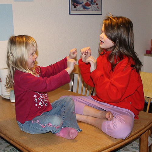– Jana heute in der Schule auf die Frage, was die Kinder an ihren Eltern mögen würden (Polizeiveranstaltung zum Thema Gewalt, morgen sind die Eltern dran): “Ich finde es gut, das meine Eltern konsequent sind”. shock