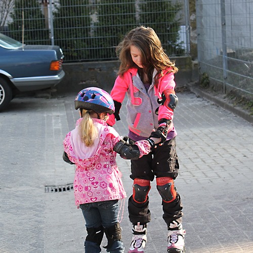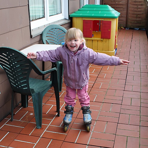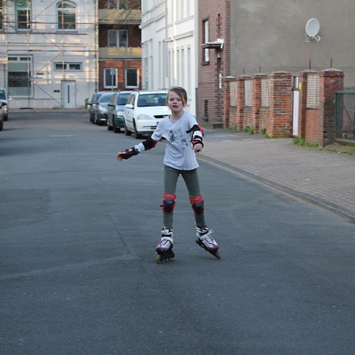Nachmittags wollte Jana eigentlich mit ihrer Freundin ins Schwimmbad, aber ihre Freundin war dann nach dem Termin beim Kieferorthopäden nicht wirklich in der Laune dafür und so ging es nur hier in den Hof und wieder zurück.