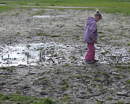Einer Schlammpfütze kann das Kind auch mit Schnupfnase nicht widerstehen *g*.