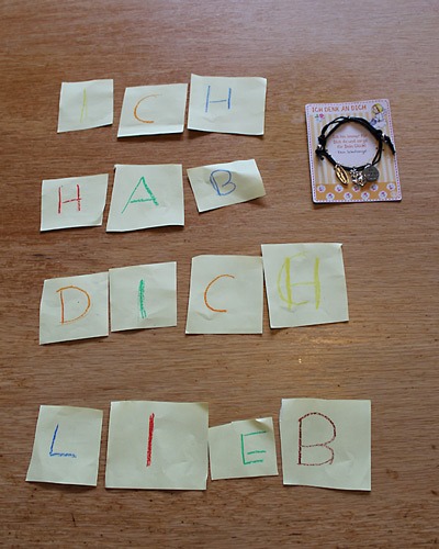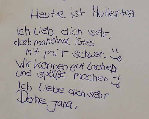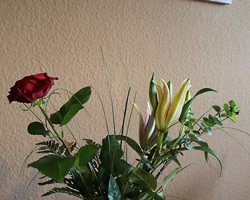 Mich erwartete heute morgen Frühstück. Von Chris gab es “Sun” von Jil Sander, von Lena eine Herzkarte und einen Traumfänger (beides im Kindergarten gebastelt). Von Jana gab es eine Schnitzeljagd, an deren Ende ein Armband mit Schutzengel auf mich wartete. Außerdem gab es von Lena eine Rose und von Jana Lilien Smiley mit geöffnetem Mund . Ich hab heute auch tatsächlich alle Viere von mir gestreckt und nur das Nötigste gemacht. Morgen früh kommen Handwerker, da muss ich eh zu Hause sein und kann in Ruhe durchwirbeln …