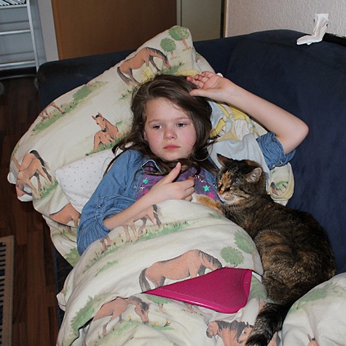 … hab ich heute früher aus dem Kindergarten geholt, weil ihre Erzieherin es für eine gute Idee hielt, im strömenden Regen draußen zu spielen. Eigentlich hab ich da auch nichts gegen (und Lena sowieso nicht), aber ich darf mir dann in spätestens 3 Tagen wieder anhören, wie erkältet doch das arme Kind wäre. Was ein Wunder *grummel*. Kaum oben, durfte ich auch schon wieder los: Jana abholen. In der Schule geht gerade ein Magen-Darm-Virus rum, der sich (zum Glück) hauptsächlich in Magenkrämpfen und allgemeiner Schlappheit äußert und alle wie die Fliegen umhaut (inkl. Lehrer). War ja klar, das Jana den mitbringen muss.