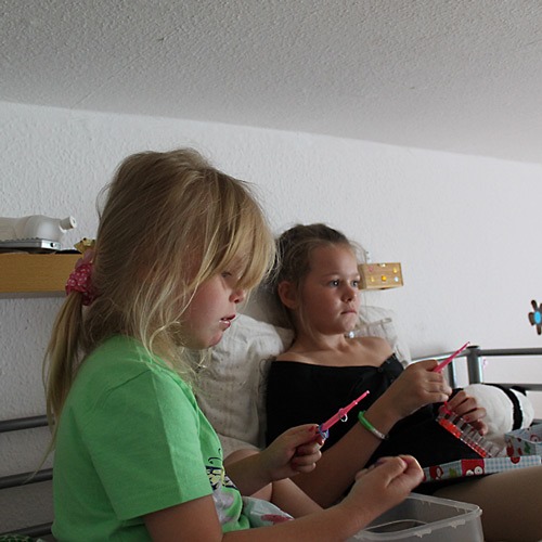 Und Jana ist im siebten “Loom”-Himmel seit dem Postboten heute, der das Amazon-Paket mit Lenas Schulbüchern und einem Loom-Set brachte Smiley mit geöffnetem Mund.