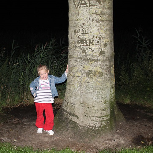 Mitten in der Nacht waren die Kinder wach genug, um das erste Brötchen zu verdrücken auf der Hinfahrt und diesen Baum zu bewundern. Und nein, ICH habe keine Ahnung, wo wir waren zu der Zeit.