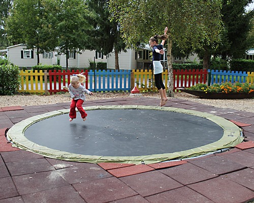 Was lange währt, wird endlich gut und während wir Erwachsenen ziemlich geschafft waren, wollten die Mädchen direkt aufs Trampolin. Nachdem die Koffer ausgepackt waren, natürlich.