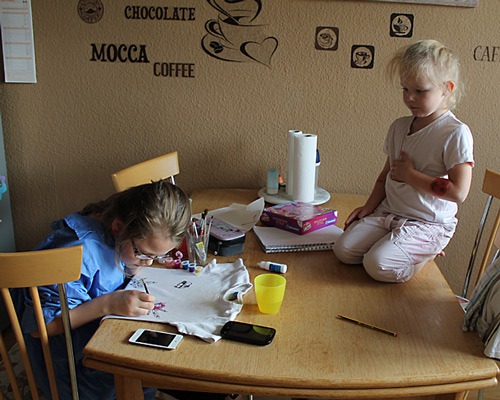 … durfte ich heute. Bis 9 Uhr sogar, dann weckten mich die Geräusche aus der Küche und ich hielt es doch für notwendig, mal in Erscheinung zu treten Zwinkerndes Smiley . Um 12.30 Uhr verließ uns Janas Übernachtungsgast und danach konnten die Mädchen und ich in Ruhe über den Bontekai zum Küstenmuseum schlendern. Dort gab es eine “Piratenrallye”, die den Kindern sichtlich Spaß machte. Zu Hause stand noch ein wenig malen und essen auf dem Programm. Rainer kam gerade rechtzeitig zum Essen und während Jana sich das Feuerwerk vom Balkon aus ansehen wollte, ging der Rest inkl. Rainer zum Bontekai und schaute von dort zu. Morgen holt Opa die Kinder, Chris und ich dürfen/müssen arbeiten. Und danach heißt es: Urlaub Smiley.