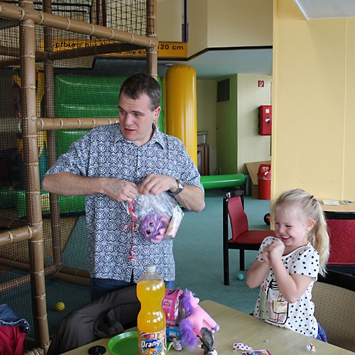 Zum Ende hin gab es aber noch etliche Bilder zu knipsen von allen 6 Kindern im Haufen vor der Rutsche (5 zusammen gerutscht, der sechste wurde quietschend um gekugelt) und dem ganzen Pulk inkl. Chris beim Lego bauen. War also anstrengend, aber schön