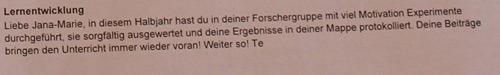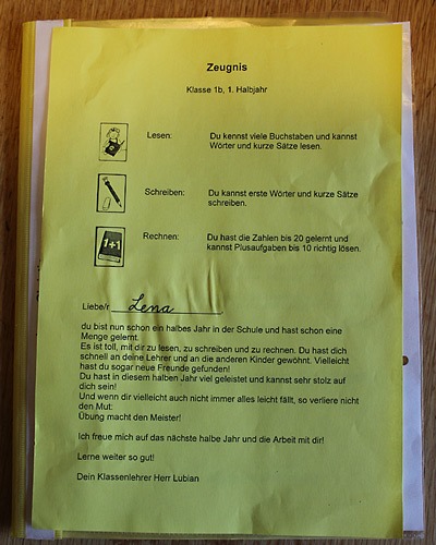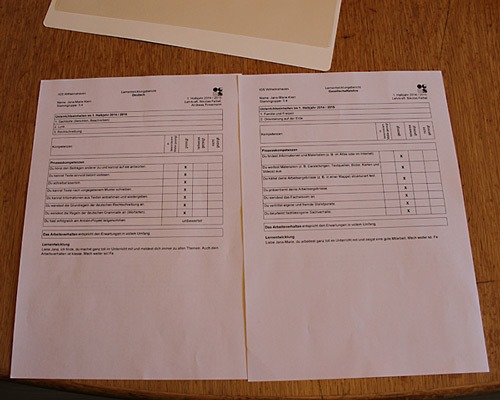 Jana kam dann auch ein wenig später und an ihrem “Zeugnis” (gibt es in der Art ja nicht die ersten Jahre auf der IGS) kann man sehen, das wir gut getan haben daran, das Kind auf die IGS zu stecken. Opa und ich haben uns köstlich über die vielen lobenden Kommentare der Lehrer amüsiert. “Gründlich, sorgfältig, machst ganz toll im Unterricht mit, meldest dich immer, Arbeitsverhalten ist klasse, konzentriert, gewissenhaft”. Arbeitsverhalten ist auch in sämtlichen Fächern durch die Bank durch bewertet worden mit: “entspricht den Erwartungen in vollem Umfang.”. Unsere Mi :herz: ? Der ich zig Mal sagen muss, das sie was vom Boden aufheben soll, das sie vorher achtlos dahin geworfen hat? Besonders stolz war sie auf den Kommentar ihrer Naturwissenschaftslehrerin: