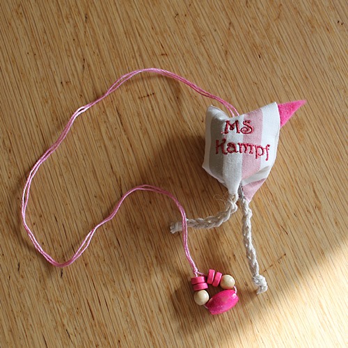 Zwei Teilnehmer der Gruppe hatten sich die wahnsinnige Mühe gemacht, für jeden ein Lesezeichen zu basteln/nähen. Eines davon war dieses süße “Kampfhuhn” :herz: .