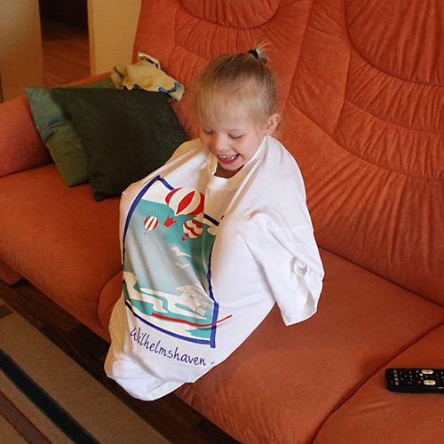 Das T-Shirt gab es vom Küstenmuseum mit nach Hause und wurde von Lena gleich zum Nachthemd erklärt Smiley