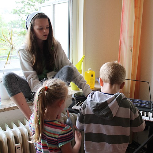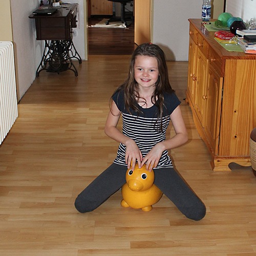 Ein Hüpfpferd, zwei Hüpfbälle. Drei Kinder. Ich sage jetzt nichts über den Lärmpegel