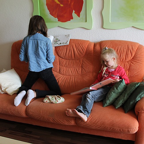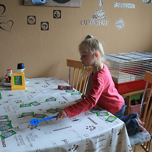 … durfte heute noch ein einziges, letztes Mal spontan in den Kindergarten. Ein Junge ihrer ehemaligen Gruppe konnte leider seinen Freund nicht wie geplant mitnehmen und deshalb fragte seine Mutter kurzfristig heute morgen an, ob Lena Lust hätte. Hatte Lena. Und so konnte sie sich heute morgen noch einmal davon überzeugen, das die Schule doch schöner ist. Noch dazu bekam sie heute Abend von ihrer Freundin eine Einladung zur “Schlafparty” nächste Woche, dieser Tag war eindeutig ihrer *g*. Jana war in der Zeit bei unseren Nachbarn unten und im Austausch kam einer der Jungs zu uns nach oben, als wir mit dem Einkauf durch waren. Bei dem Wetter konnte man sonst ja auch nicht viel machen, also wurde durch die Wohnung getobt.