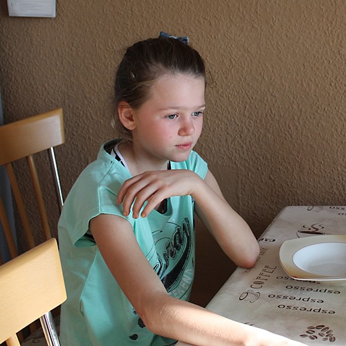 Das Kind ist wieder da, vorbei ist es mit der Ruhe Smiley mit geöffnetem Mund.