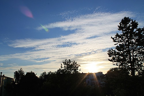 Wäscheaufhängen bei traumhaftem Sonnenuntergang und einer offensichtlich netten Feier irgendwo in einem der gegenüberliegenden Höfe. Ich konnte mir nicht helfen und musste auch fleißig “Wonderwall” mitsingen, während ich mich um die Wäsche kümmerte. So fühlt sich Sommer an Smiley mit geöffnetem Mund.