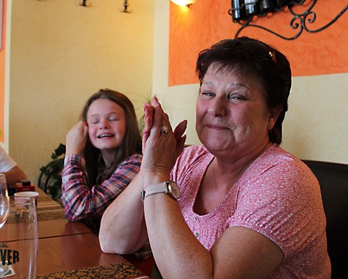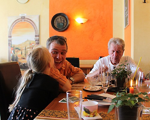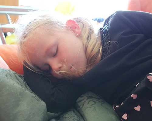 … war Lena heute, als Chris sie bei ihrer Freundin abgeholt hat. Kein Wunder, wo die kleinen Mäuse tatsächlich bis 1 Uhr Nachts (“Morgens, Mama, morgens!!!”) durchgehalten haben. Lena schlief also heute Mittag auf der Couch, auf dem Weg zu Oma und Opa und am liebsten hätte sie sich dort wohl auch gleich wieder hingelegt. Aber wir wollten ja mit dem Geburtstagskind (Opa) zum Italiener. Schlafen ging da nicht und da sie ausnahmsweise mal Cola durfte, war sie auch zufrieden *g*.