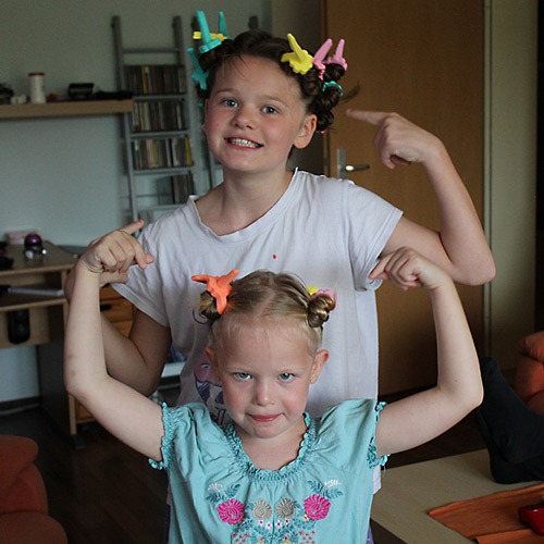 Testballon. Ich habe keine Lust mehr, immer eine Stunde Zöpfe flechten zu müssen