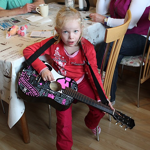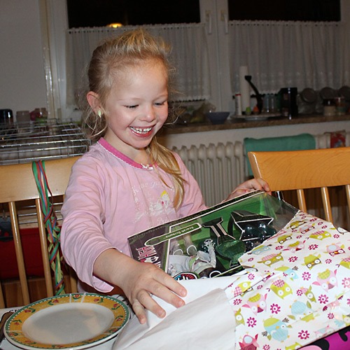 … der Geburtstag. Heute morgen hatte ich ja noch Ruhe, heute Mittag habe ich Lena und ihre Freundin zu Fuß von der Schule abgeholt. Alles andere wäre ein Verbrechen gewesen bei dem Wetter *g*. Um kurz vor 16 Uhr kamen schnell nacheinander Oma + Opa und E.’s Mama (um Lenas Freundin wieder abzuholen) und als kurz nach 17 Uhr noch Chris und Jana eintrudelten, waren wir endlich komplett und konnten den Tag noch in Ruhe ausklingen lassen. Wobei “Ruhe” relativ ist, wenn einer die Gitarre noch mal stimmt, ein anderer Oma was zeigen will und das Geburtstagskind Telefonate am laufenden Band annimmt.