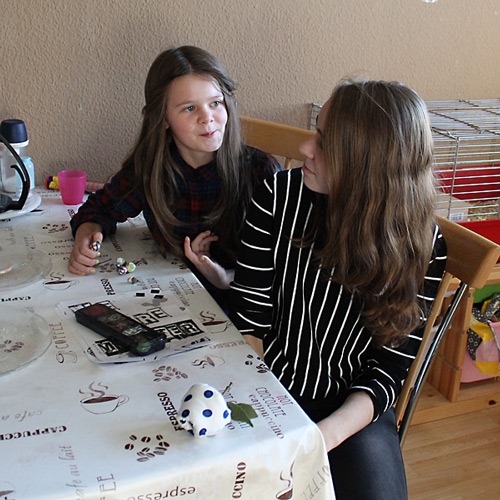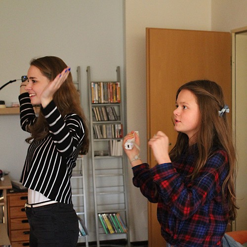 Und kaum war ich wieder zu Hause, ging es hier zu wie im Taubenschlag. E. und M. kamen von unten, um mit Lena zu spielen. J. übergab ihr Handy an Chris für eine Sicherung und ein Update und fuhr später auch mit Chris los, Jana wieder abzuholen. Während die unterwegs waren, kam Valeska. Und nicht viel später spielten E., J., Valeska und Jana Just Dance auf der WII, während M. und Lena auf der Couch zuschauten und spielten.