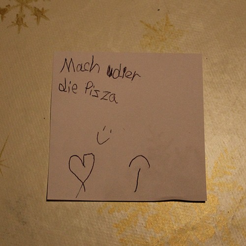 Anweisung für Chris, weil wir beim “Bunten Abend” in der IGS waren.